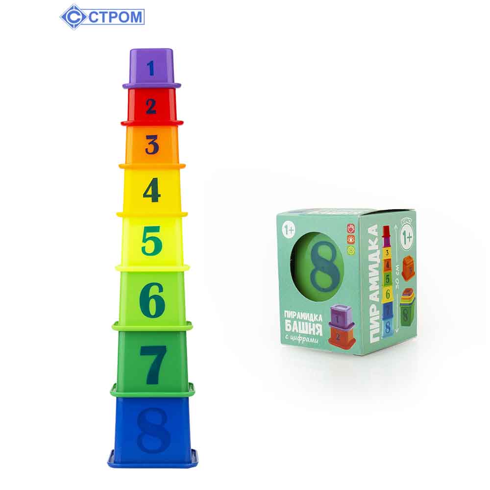 Пирамидка "Башня" 30 см, 8 элементов (в коробочке)